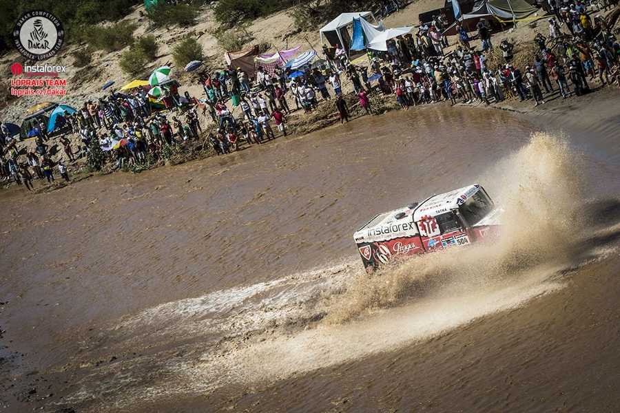 Nezastavila ho ani nehoda Číňana Zhou Yonga, jehož vůz pak po nějakou dobu blokoval cestu. Druhý včera dojel de Rooy, Aleš ho porazil o bezmála dvě a půl minuty. De Rooy se přitom v poslední etapě pokoušel předstihnout průběžně vedoucího Rusa Karginova, ale i když Karginov dojel až šestý, na celkové prvenství v letošním Dakaru mu to stačilo. Nizozemec de Rooy na něj v celkovém součtu ztratil 3 minuty a 11 vteřin, celkově třetí byl další ruský Kamaz s pilotem Nikolajevem. Kamaz obsadil i čtvrtou a pátou příčku, zabrali je Sotnikov s Šibalovem. Na šestém místě se po páteční bezmála tříhodinové ztrátě ocitl Aleš Loprais a sobotní triumf už to bohužel nevylepšil – ztráta na vítězného Karginova je nakonec 5 hodin a 4 minuty.