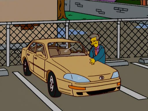 Tuto starou Toyotu Camry si zakoupil ředitel Springfieldské zákldní školy Seymour Skinner.
