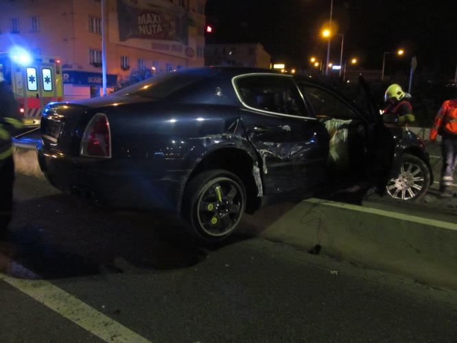 Dnes krátce před druhou hodinou v noci přijal operátor tísňové linky 158 několik oznámení o tom, že v ulici 5. května havaroval řidič vozidla Maserati do zaparkovaného vozu Mitsubishi a ve smyku nakonec najel na středová svodidla, kde zůstal stát. Na místo okamžitě vyrazily dostupné hlídky z okolí včetně záchranářů a hasičů. Policisté pak u sedmadvacetiletého muže naměřili orientační dechovou zkouškou 2,47 promile alkoholu v dechu a zjistili, že v evidencích má platný zákaz řízení. Muž nakonec skončil na ošetření v nemocnici a v současné chvíli je podezřelý ze spáchání trestného činu ohrožení pod vlivem návykové látky a maření výkonu úředního rozhodnutí, za což mu hrozí až tříleté vězení. Policisté předběžně vyčíslili škodu na vozidle Maserati asi půl milionu korun a na zaparkovaném vozu Mitsubishi asi 30 tisíc korun. Celou událostí se nyní zabývají policisté z Oddělení dopravních nehod.