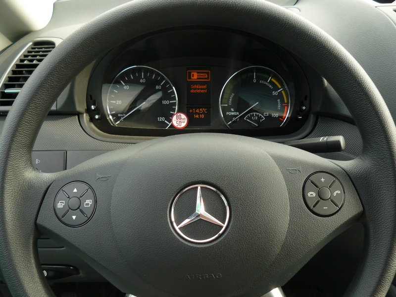 Po usednutí za volant však začínáme pociťovat první větší rozdíly od klasického Vita. Spínací skříňka je sice na svém místě a co se týče ovládání rádia a klimatizace, tam také moc rozdílu nenajdeme. Největší rozdíly však nalezneme přímo před řidičem, a to v kapličce. Zde na vás koukají dva obří budíky, odděleny palubním displejem. Ten první však důvěrně známe, je to klasický ukazatel rychlosti, na ten druhý však s údivem koukáme. Na tomto budíku totiž nalezneme údaj o množství odběru energie z baterií. Nejedná se však o číselný ukazatel přímého množství odebíraných kilowatů, nýbrž o analogový ukazatel, ukazující na optimální spotřebu energie.