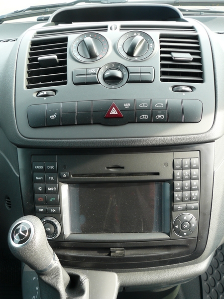 Rádio je vybaveno handsfree sadou, která podporuje přenos pomocí Bluetooth a ihned po nastartování vyhledává zařízení, která je možno připojit. Mimo to má rádio zabudovanou čtečku karet, takže již nepotřebujete velké nepraktické USB zařízení. Nutno podotknout, že se na velkém palubním displeji při couvání sepne couvací kamera, která vás upozorňuje na dění za vozidlem, což při skříňovém provedení tohoto vozu vítáme.