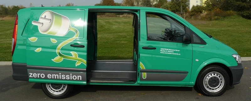 Jak už jsme řekli, na první pohled je vůz k nerozeznání od běžného Vita, který je poháněn benzínovými motory. Jediné co viditelně odlišuje vůz od běžného Vita, pokud tedy přehlédneme celopolep testovaného vozu s nápisy ZERO EMISSION a Jezdím na elektřinu, je nápis na zadních dveřích E-CELL a posuvné dveře po obou stranách. Jinak je vůz pohledný a v běžném provozu se za něj rozhodně stydět nemusíte.