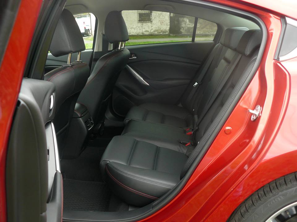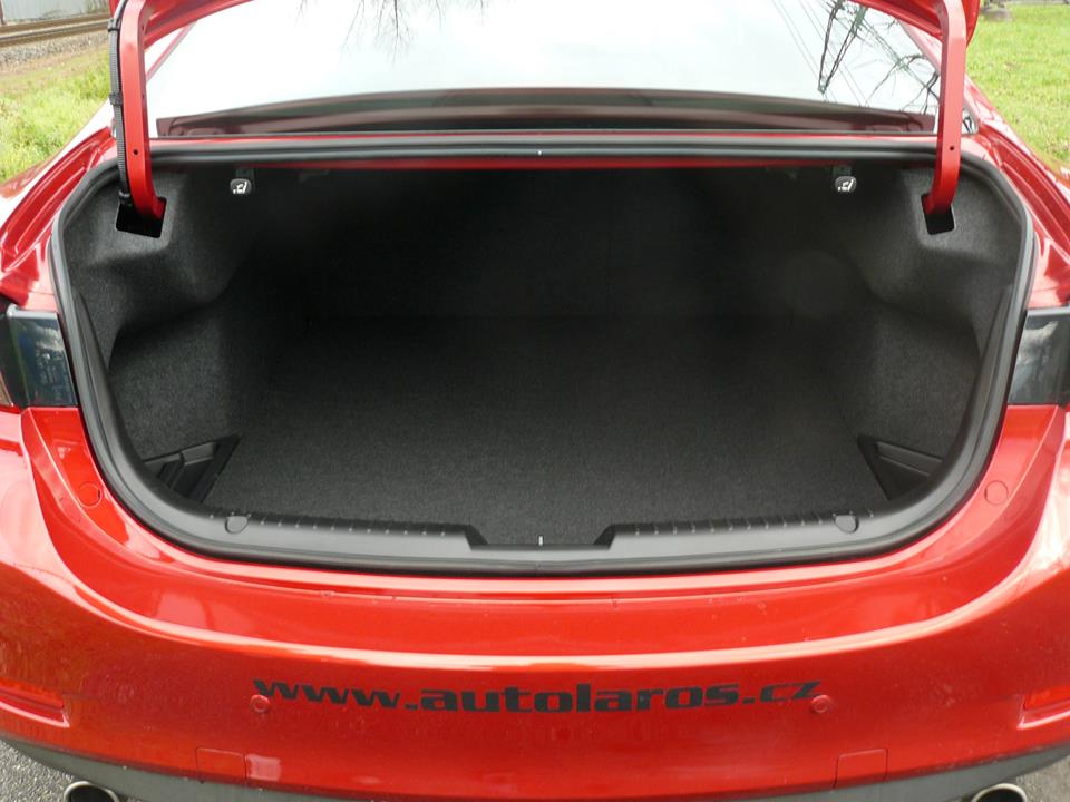 Ačkoliv zavazadlový prostor nebývá zrovna doménou sedanů, tak i tady nás Mazda mile překvapila. Na délku, ani na šířku si nemůžeme stěžovat, problém ovšem může být s výškou. Nicméně toto je opět klasický problém sedanů. Kdo by s tím měl problém, může zvolit verzi Wagon. Potěšilo nás také sklápění sedadel z prostoru kufru, ten byl ovšem tak hluboký, že jsme museli stejně vůz obejít, aby jsme sedačky složili. Pokud zvednete koberec zavazadelníku, tak můžete využít několik přihrádek. Objem zavazadlového prostoru je 489 litrů. Po otevření zavazadelníku ovšem uvidíte nijak nezakryté úchyty víka kufru, myslíme si, že mohly být obložené alespoň plastem, např. jako u Hondy Accord.