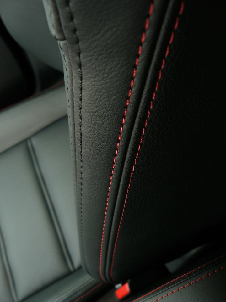 Pokud se ovšem podíváme na sedadla z pohledu řidiče, tak si zde nemůže snad nikdo na nic stěžovat. Přední sedadla skvěle podrží tělo v zatáčkách, navíc ani po dlouhé cestě se nebudete cítit unaveně. Vzhledem k tomu, že jsme měli elektricky seřizovatelné sedadla, tak najít si ideální polohu za volantem nebyl žádný problém. Sedačka je ukotvena příjemně nízko, nabudí Vás to tedy opět na sportovní notu. Tento dojem umocní červeně prošívaná sedadla.