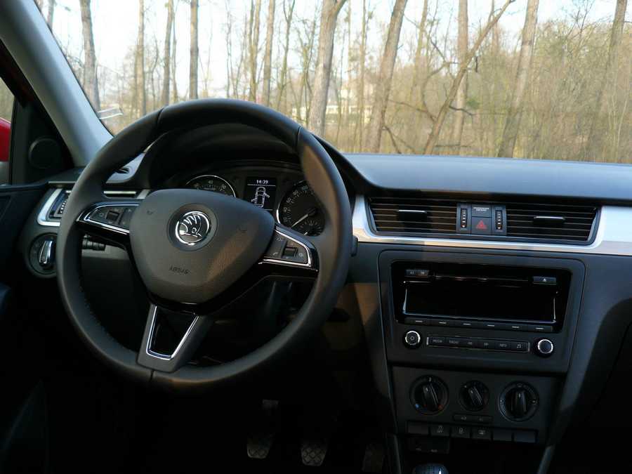 Při usednutí do relativně objemných sedadel ovšem oceníte volant, který skvěle padne do ruky. Doporučujeme ovšem příplatek za multifunkční volant-dostanete možnost ovládat palubní počítač a audio přímo z volantu. Kritiku si ovšem zaslouží přední loketní opěrka, tuto opěrku neměli rádi již řidiči první generace Octavie, ve většině případů měli tuto opěrku zvedlou, protože v kabině ubírá prostor pro připnutí bezpečnostního pásu a manipulace s ruční brzdou. Nicméně na tady toto se dá jistě zvyknout.