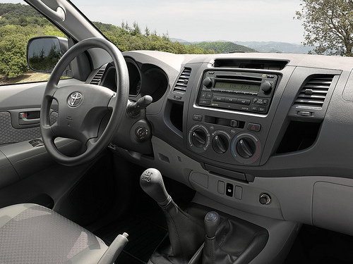 Po usednutí do vozidla jsem se chvíli rozkoukával a zjišťoval, kde mi vlastně auto končí. Vůz svou velikostí totiž nepřipomíná nic, co jsem předtím řídíl. Jízdu jsem se proto snažil upravit tomu, jakobych řídil dodávku. S tímto jsem však nepochodil, vůz se totiž v žádném případě nechová jako dodávka a spíše nabízí ke komfortní jízdě. Ačkoliv jsou na zadní nápravě umístěny tvrdá péra místo klasických tlumičů, jízda v Hiluxu je docela pohodlná. V našem případě, kdy byla korba vozu prázdná, poskakoval vůz na silnic téměř při každé větší nerovnosti. Zadní náprava se totiž bez zatížení hůře vyrovnává s nerovnosti. A co víc, při rozjezdu se mi při vytočených kolech začala protáčet hnaná zadní náprava, čímž dokazovala, že má spostu síly na to, aby mohla být s klidným svědomím zatížena.